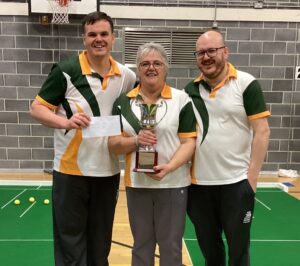 The 27th annual Easingwold Open Triples took place on Saturday 3rd February in the Galtres Centre playing for the Jack Freeman Trophy and £105 in prize money. There were 38 teams taking part from all over North Yorkshire including 4 entries from Durham, 2 from West Yorkshire and 3 all the way from Norfolk. (This makes this competition the largest held in our county).