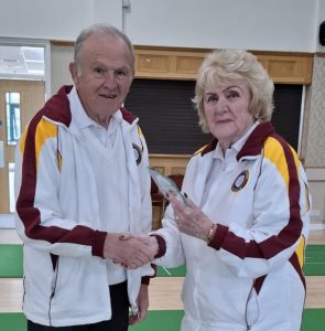 The match saw Roger Ellis (the skip in the Terriers most consistent team), clock up his 100th inter-county match. He joins an exclusive list of just 17 others who have achieved this over the years. Captain Pat Jones presented him with a glass memento of this achievement.
