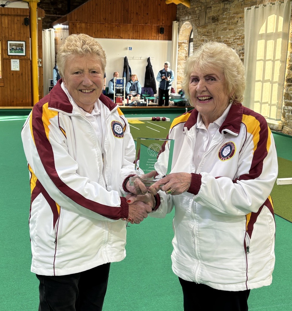 At the beginning of the match Dianne Ellis received an award from our team captain Pat Jones having played 100 games for our county team. Congratulations Dianne.